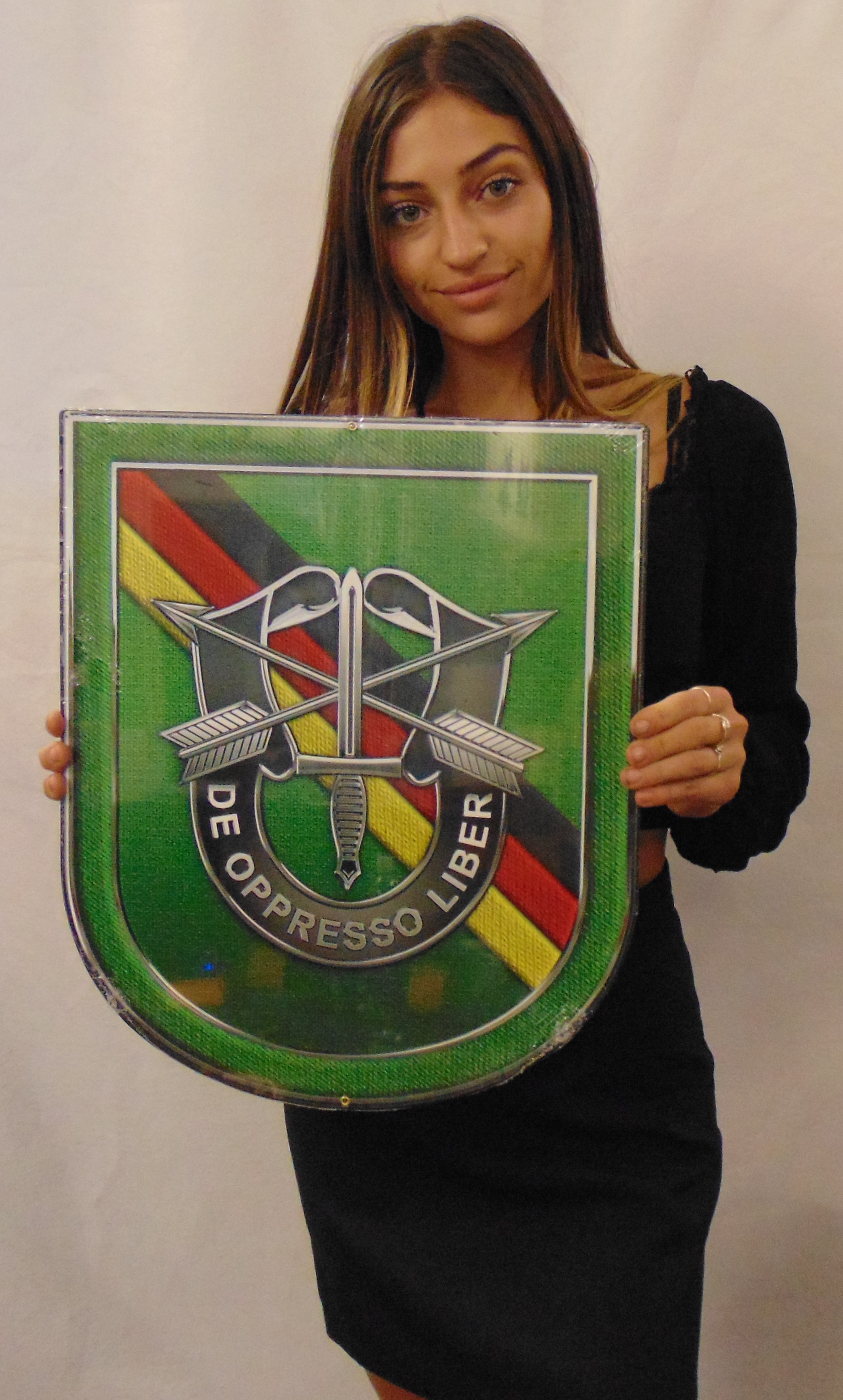 From Special Operations Group, presented by "Military Insignia 3D" collection by Serge Averbuk, this custom 10th (Europe) Special Forces Group all metal shape measures 15 inches by 18 inches and weighs in at 2 lb(s). We hand make all of our custom metal shapes in the USA using heavy gauge american steel and a process known as sublimation, where the image is baked into a powder coating for a durable and long lasting finish. This custom metal shape is drilled and riveted for easy hanging.