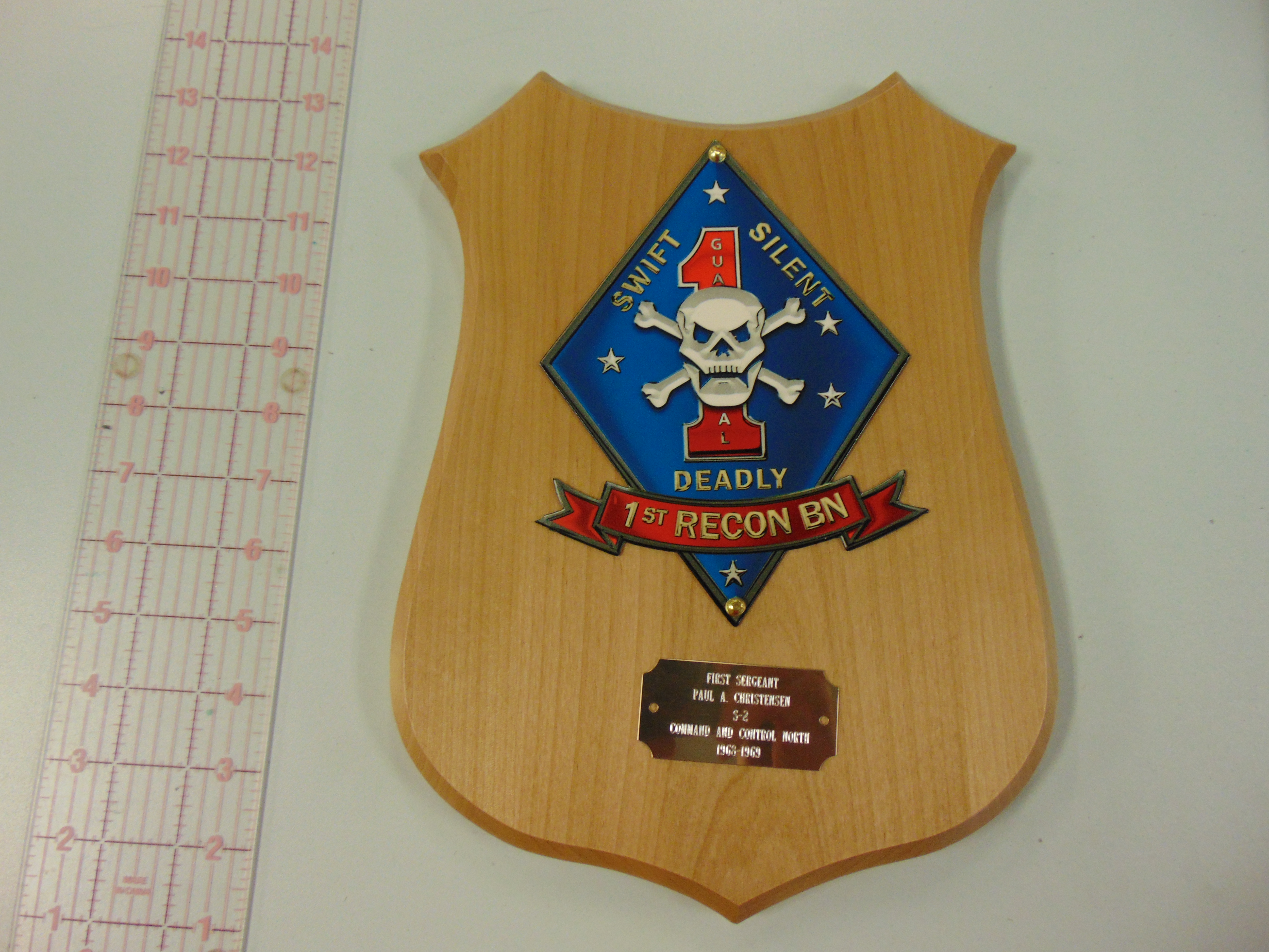 From Special Operations Group, presented by "Military Insignia 3D" collection by Serge Averbuk, 1st Force Recon Battalion Wooded Plaque with Your Engraving Information.