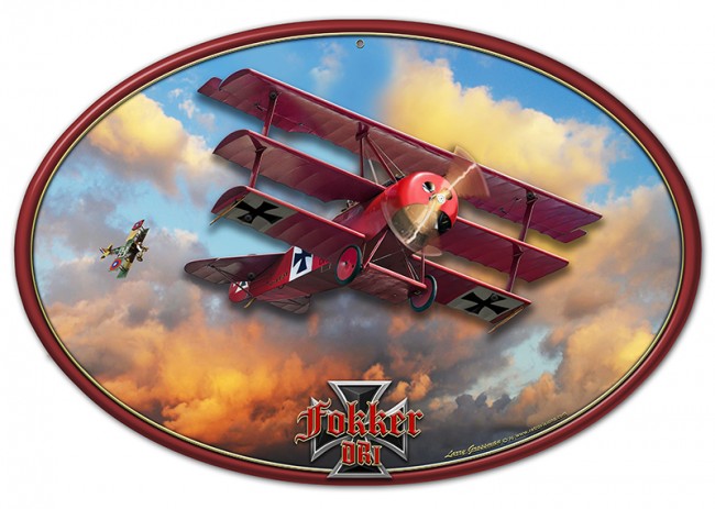 From the Larry Grossman Signs licensed collection, this 3-D Fokker Tri-Plane 3d-metal signs measures 20 inches by 13 inches and weighs in at 4 lb(s). This 3d-metal signs is hand made in the USA using heavy gauge american steel and a process known as sublimation, where the image is baked into a powder coating for a durable and long lasting finish.