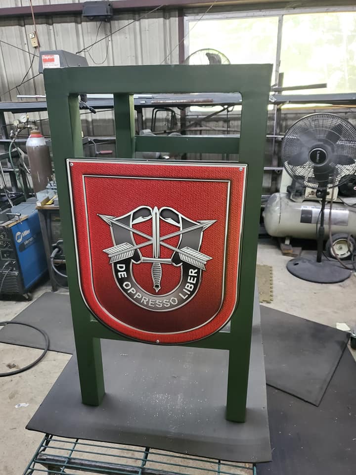 7th Special Forces Group All Metal Sign 15 x 18". We hand make all of our custom metal shapes in the USA using heavy gauge american steel and a process known as sublimation, where the image is baked into a powder coating for a durable and long lasting finish. This custom metal shape is drilled and riveted for easy hanging.