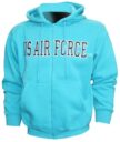 Air Force Embroidered Applique on Turquoise Fleece Zip Up Hoodie