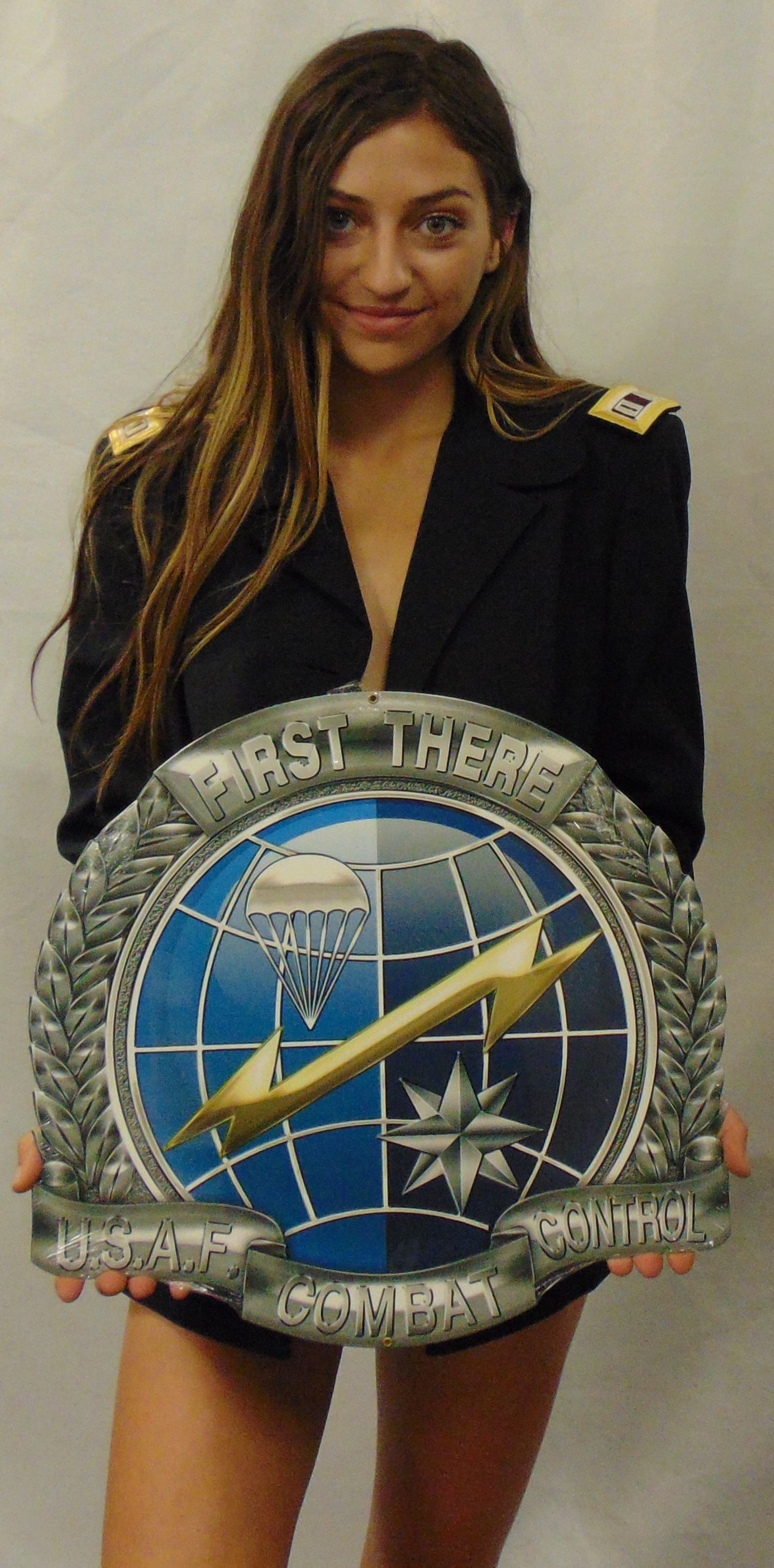 From Special Operations Group, presented by "Military Insignia 3D" collection by Serge Averbuk, this Air Force Special Operations Combat Control Medal Sign measures 16 inches high. This custom metal shape is hand made in the USA using heavy gauge American steel and a process known as sublimation, where the image is baked into a powder coating for a durable and long lasting finish. This custom metal shape is drilled and riveted for easy hanging.