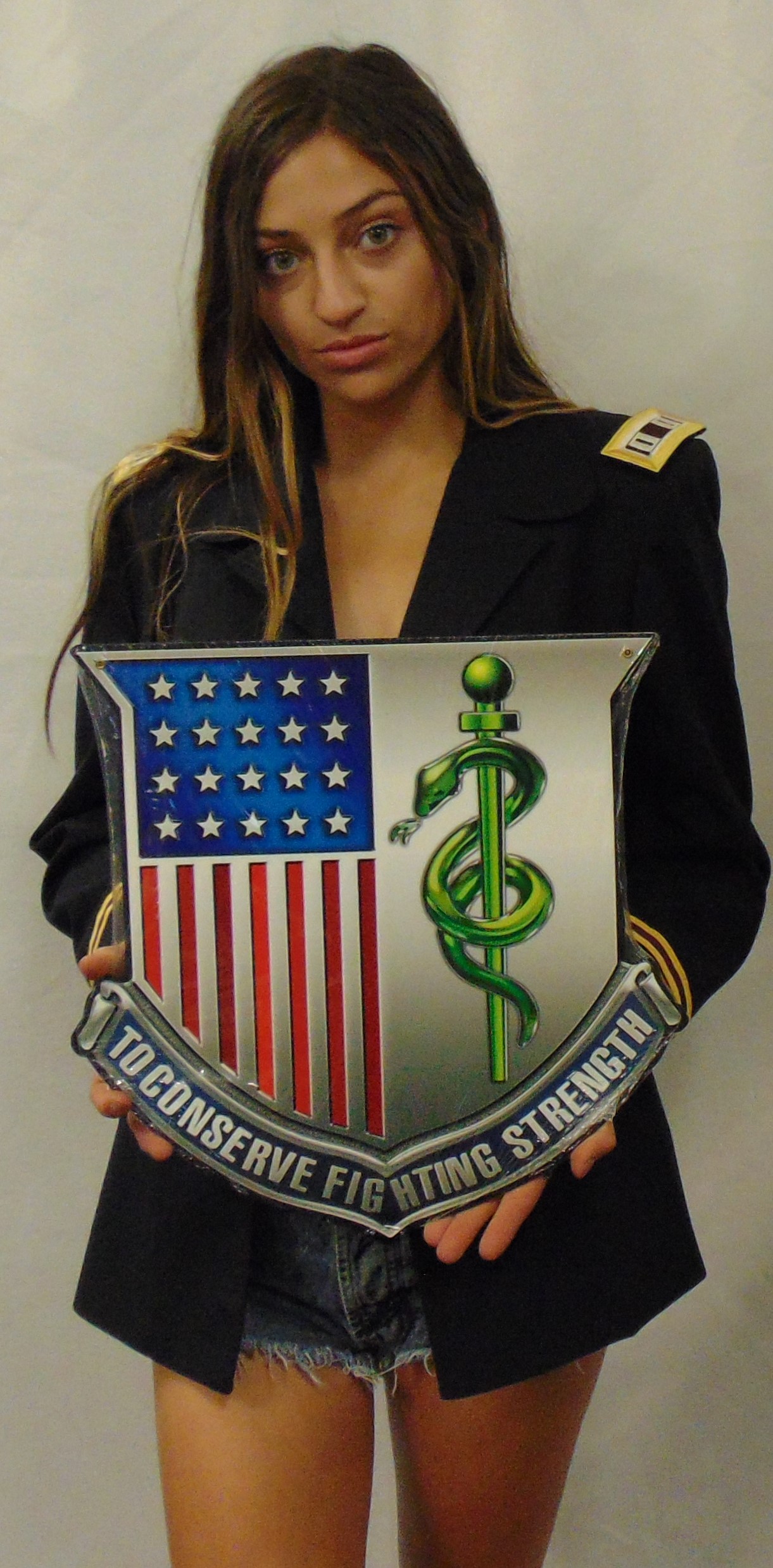 AMEDD DUI REGIMENTAL INSIGNIA All Metal Sign 15 x 15". We hand make all of our custom metal shapes in the USA using heavy gauge american steel and a process known as sublimation, where the image is baked into a powder coating for a durable and long lasting finish. This custom metal shape is drilled and riveted for easy hanging.