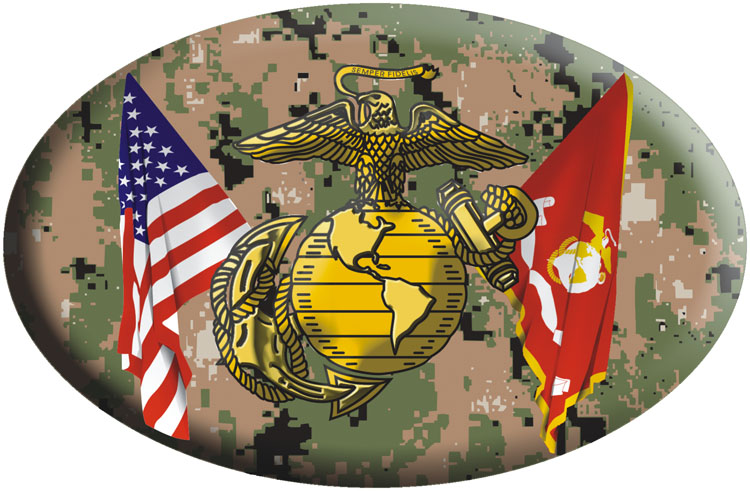 AMERICAN AND MARINE CROSSED FLAGS OVAL MAGNET