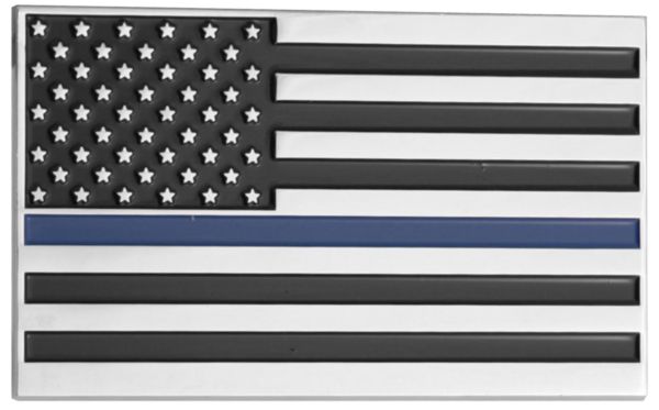 AMERICAN FLAG THIN BLUE LINE METAL CHROME PLATED EMBLEM