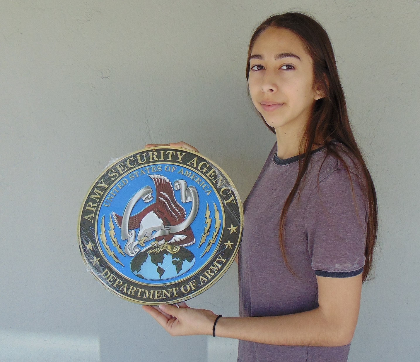 Army Security Agency Emblem All Metal Sign 14" Round. We hand make all of our custom metal shapes in the USA using heavy gauge american steel and a process known as sublimation, where the image is baked into a powder coating for a durable and long lasting finish. This custom metal shape is drilled and riveted for easy hanging.