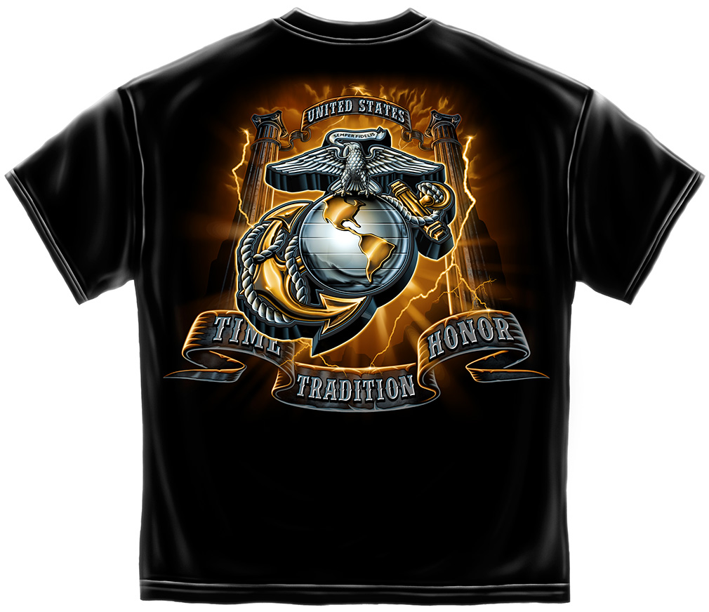 USMC GOLD LIGHTNING TIME HONOR TRADITION EAGLE T-SHIRT