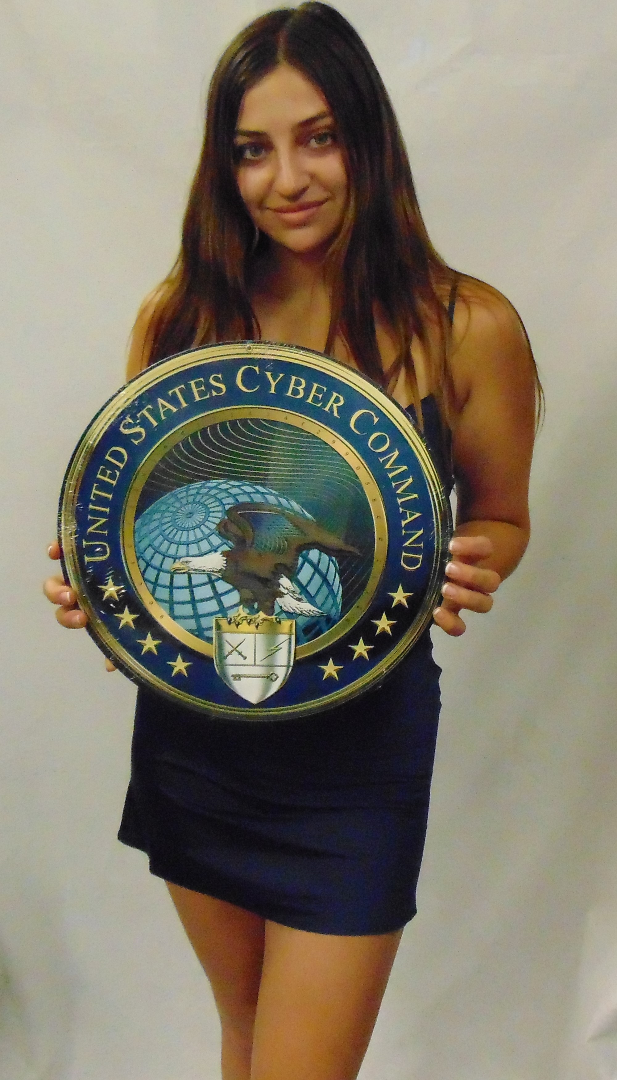 United States Cyber Command - CYBERCOM All Metal Sign   We hand make all of our custom metal shapes in the USA using heavy gauge american steel and a process known as sublimation, where the image is baked into a powder coating for a durable and long lasting finish. This custom metal shape is drilled and riveted for easy hanging.