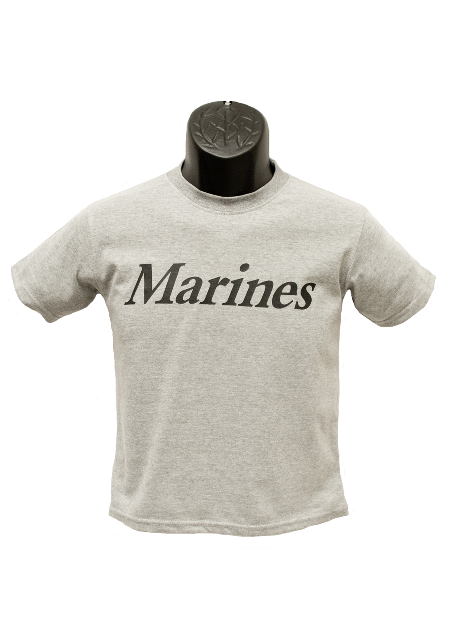 Jersey Grey Marines T-Shirt: Show your pride with one of our bold branch t-shirts. They are made from a 7oz 100% soft performance cotton. Screen printed and tagless for comfort. Kids love these comfortable shirts. Officially licensed.