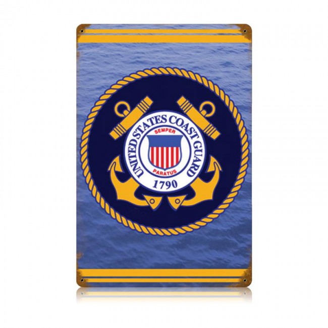 From the Past Time Signs licensed collection, this Coast Guard Vintage Metal Sign measures 12 inches by 18 inches and weighs in at 2 lb(s). This Vintage Metal Sign is hand made in the USA using heavy gauge american steel.