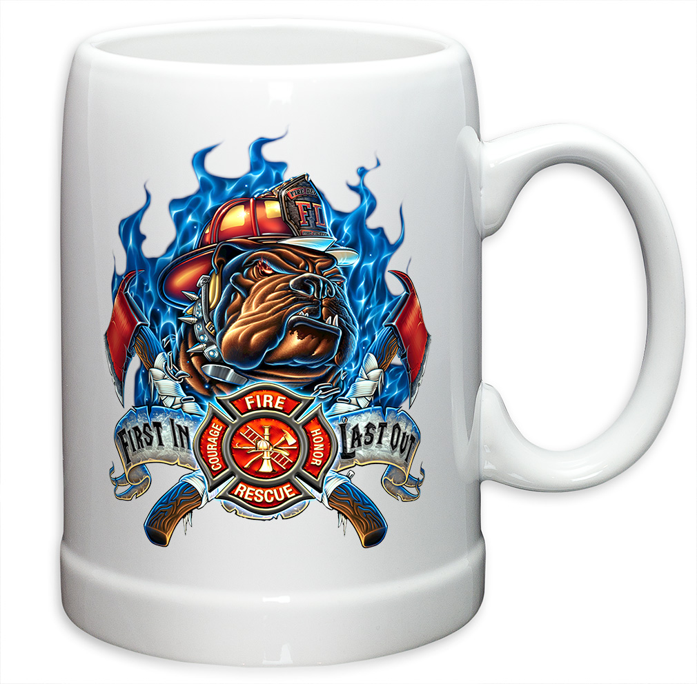 FIRE DOG FIRST IN LAST OUT STONEWARE MUG