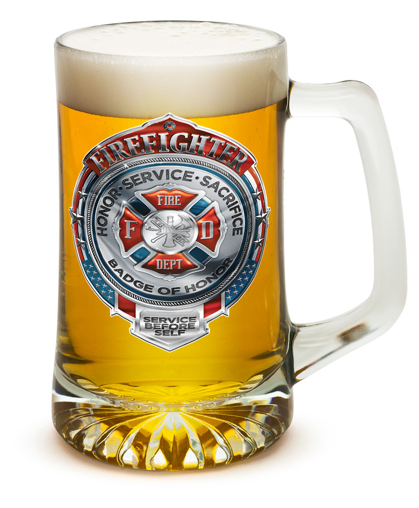 FIRE HONOR SERVICE SACRIFICE CHROME BADGE TANKARD