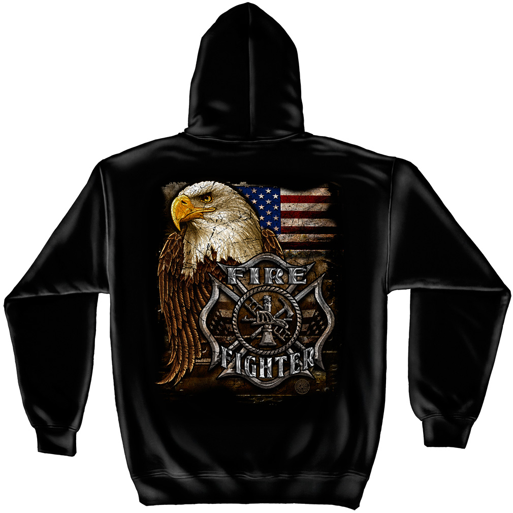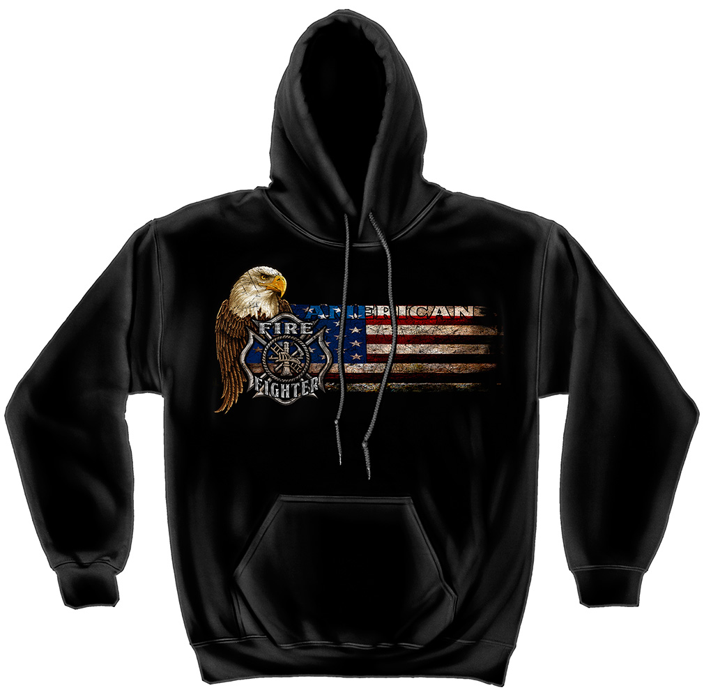 FIREFIGHTER EAGLE AND FLAG HOODED SWEATSHIRT