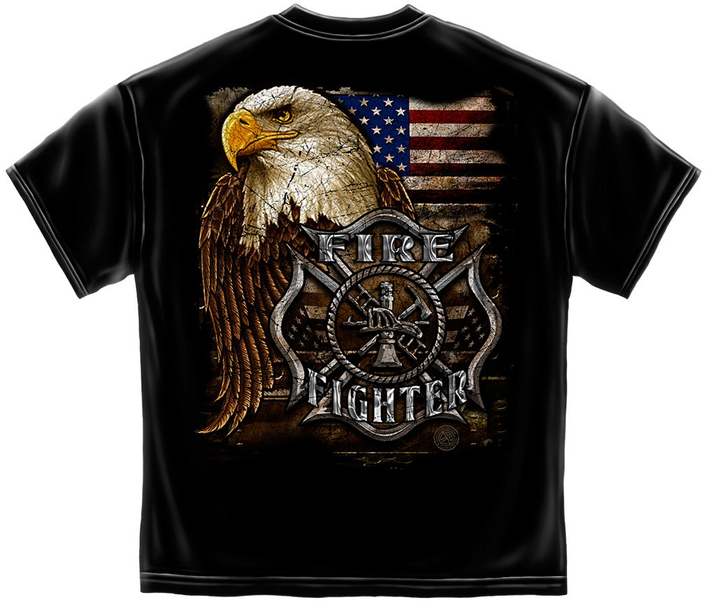 FIREFIGHTER EAGLE AND FLAG T-SHIRT