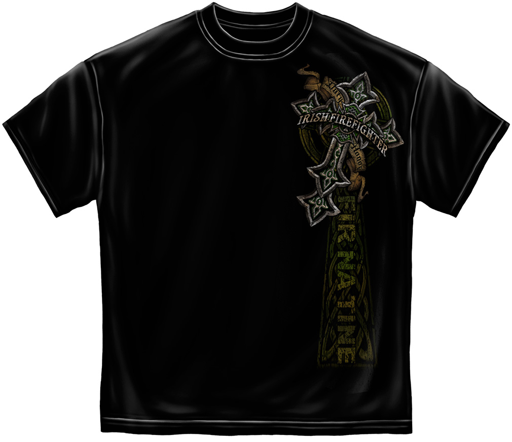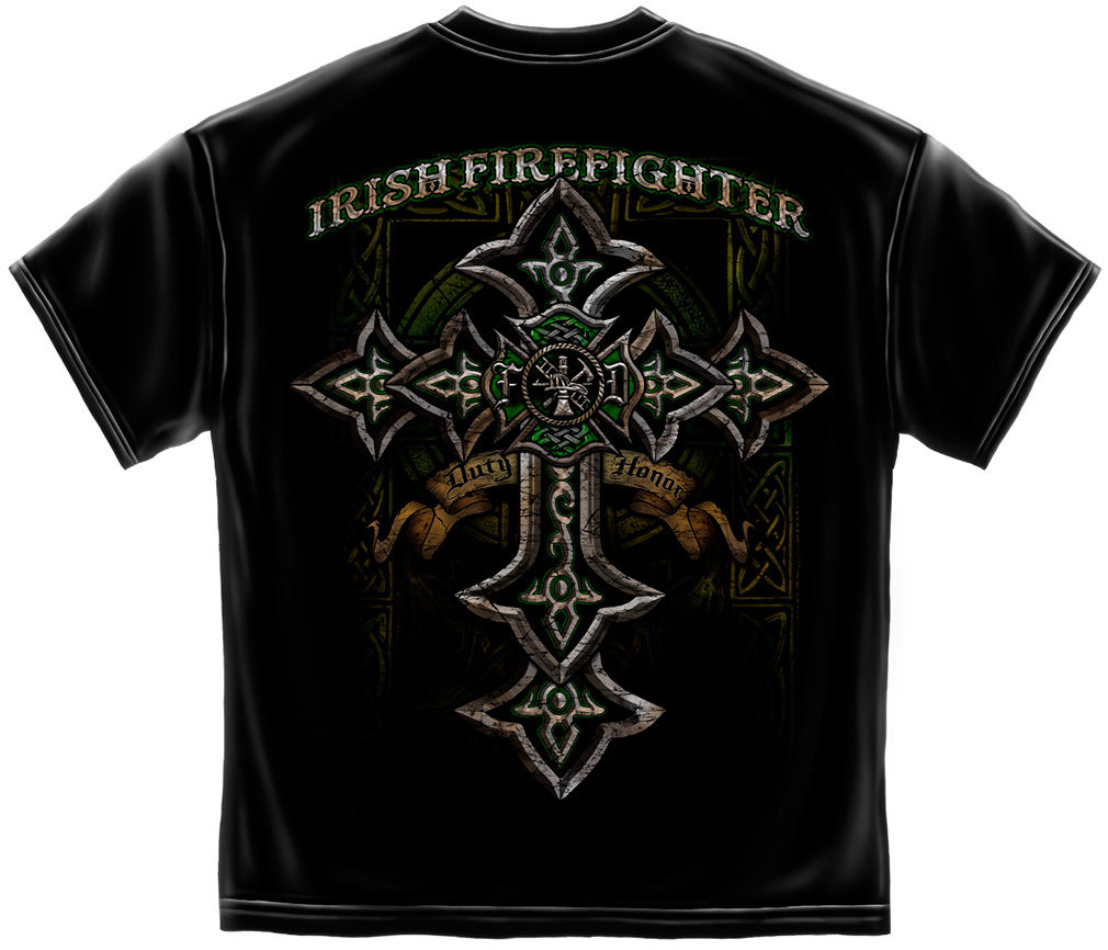 FIREFIGHTER IRISH CELTIC CROSS GREEN FOIL T-SHIRT