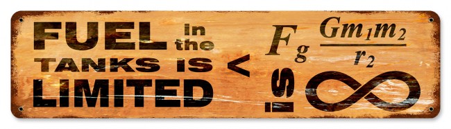 Fuel vs Gravity satin metal sign 20 inch by 5 inch.