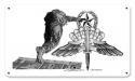 HALO Master Freefall by Red Anchor Art Metal Sign measures 14 inches by 8 inches and weighs in at 3 lb(s). This custom metal shape is hand made in the USA using heavy gauge American steel and a process known as sublimation, where the image is baked into a powder coating for a durable and long lasting finish. This custom metal shape is drilled and riveted for easy hanging. We do not stock signs as that would be too costly to store, we begin the process of making your sign or clock after your order is confirmed! Our sublimation process takes approximately 7 business days to complete and with shipping you can expect your purchase within 7 to 10 days after order confirmation.