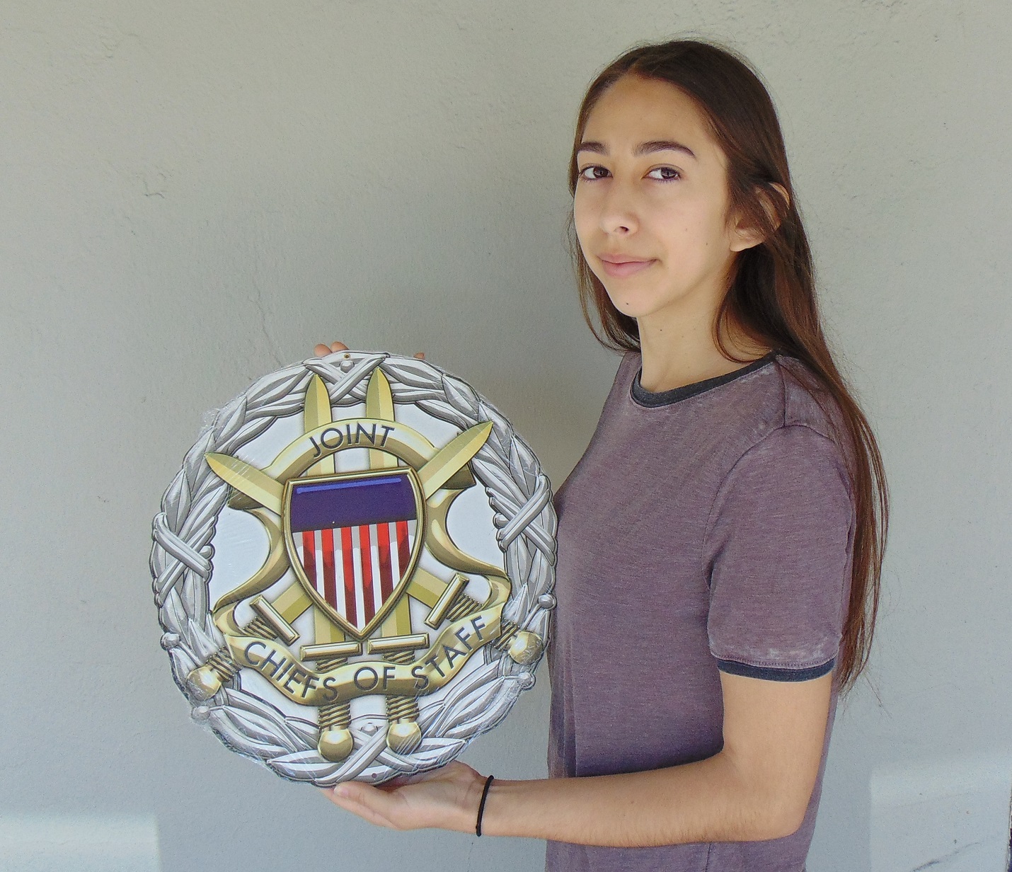 Joint Chiefs of Staff Badge  All Metal Sign  15 x 16" Round. We hand make all of our custom metal shapes in the USA using heavy gauge american steel and a process known as sublimation, where the image is baked into a powder coating for a durable and long lasting finish. This custom metal shape is drilled and riveted for easy hanging.
