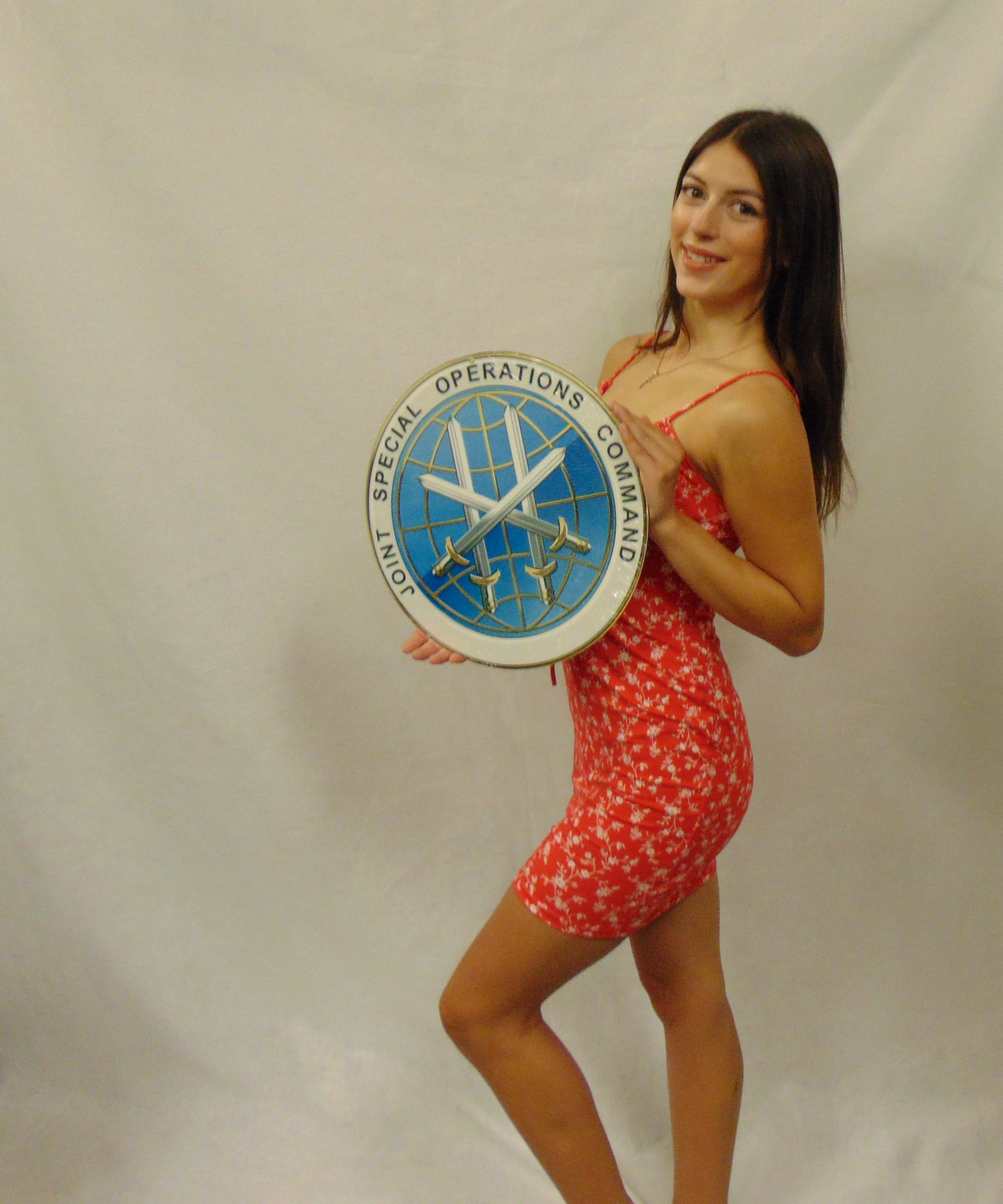 From Special Operations Group, presented by "Military Insignia 3D" collection by Serge Averbuk, this Naval Joint Special Operations Command Metal Sign measures 14 inches. This custom metal shape is hand made in the USA using heavy gauge American steel and a process known as sublimation, where the image is baked into a powder coating for a durable and long lasting finish. This custom metal shape is drilled and riveted for easy hanging.