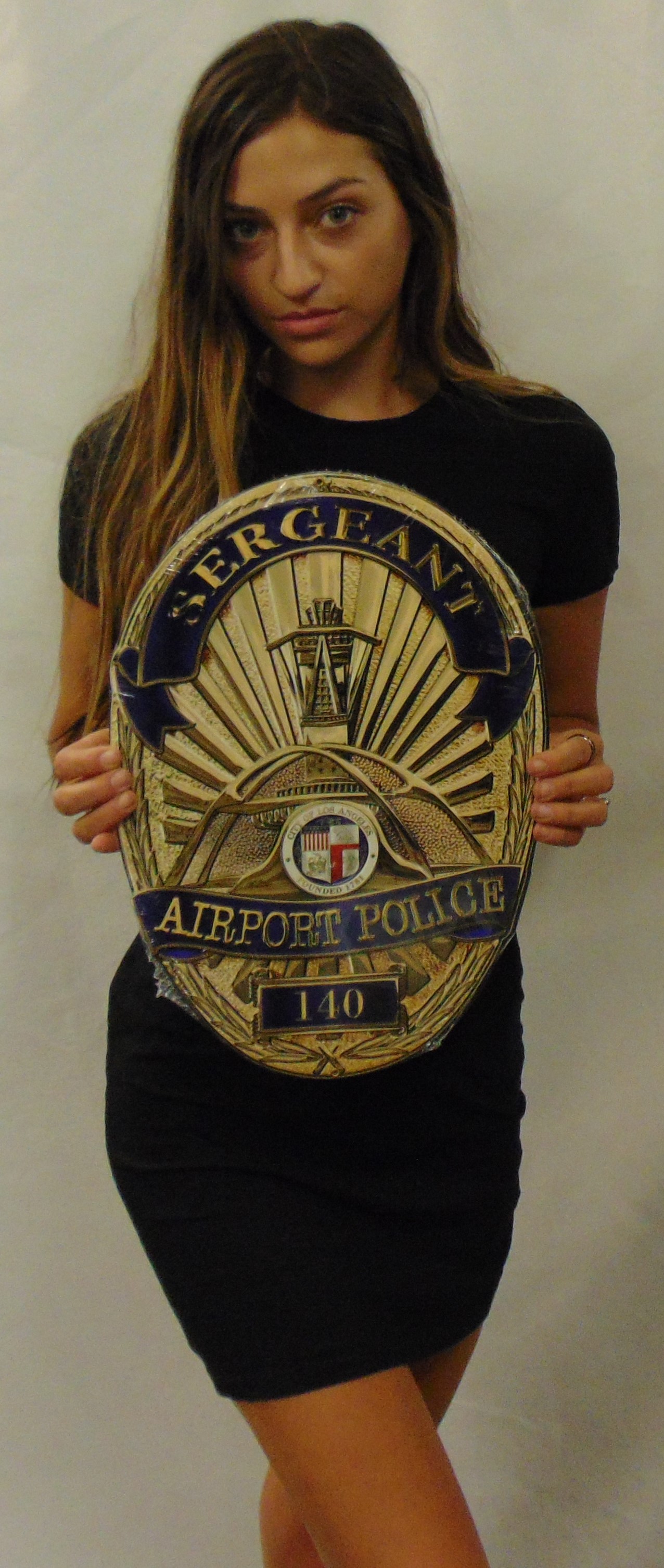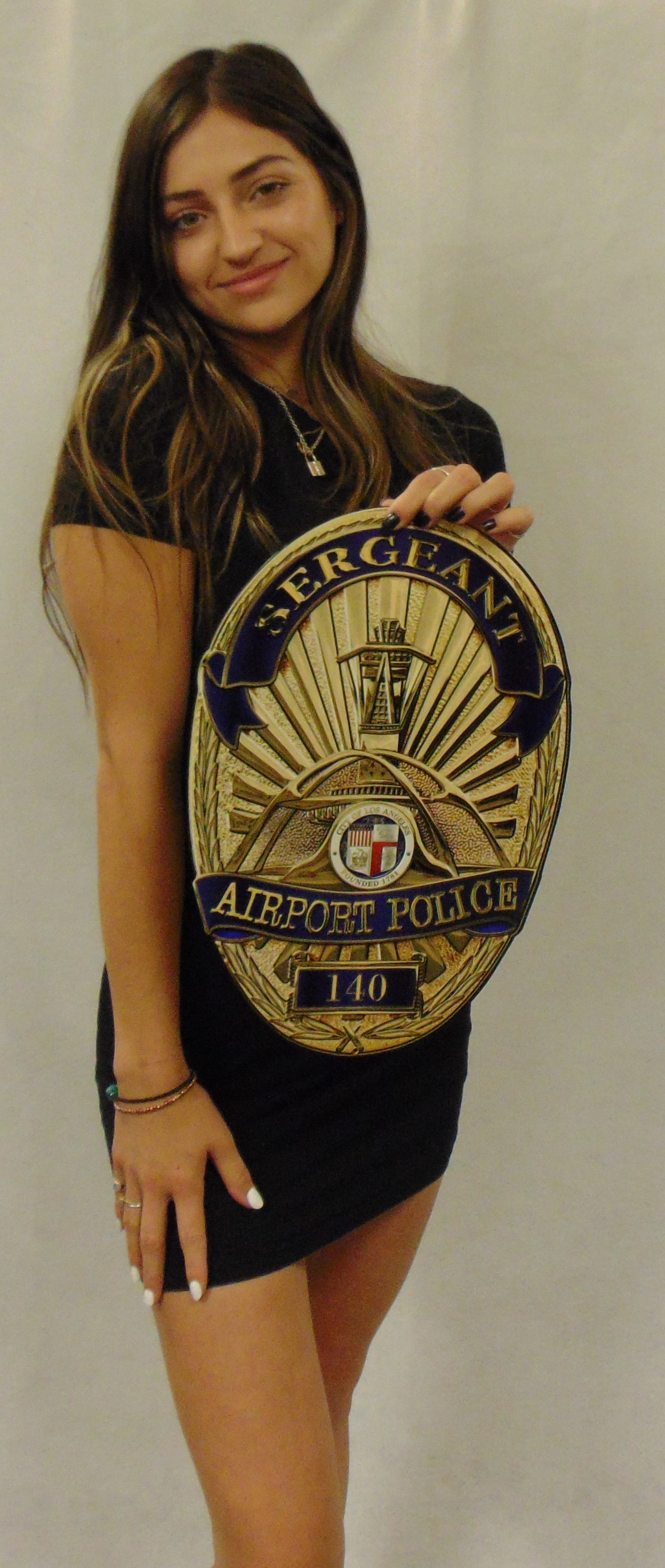 Los Angeles Airport Police Department (SERGEANT) Badge all Metal Sign with your badge number or name. 11" x 16" This custom metal shape is hand made in the USA using heavy gauge American steel and a process known as sublimation, where the image is baked into a powder coating for a durable and long lasting finish. This custom metal shape is drilled and riveted for easy hanging. We do not stock signs as that would be too costly to store, we begin the process of making your sign or clock after your order is confirmed! Our sublimation process takes approximately 7 -30 business days to complete and shipped.