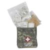 Designed to handle minor medical emergencies. The military style canvas pouch can be worn on a belt. Over 20 essential basic first aid items to treat minor abrasions, cuts and wounds. Sterile pads, band aid strips, antiseptic towelettes, gauze rolls and non-aspirin pain relievers. Weighs .52 lbs.
