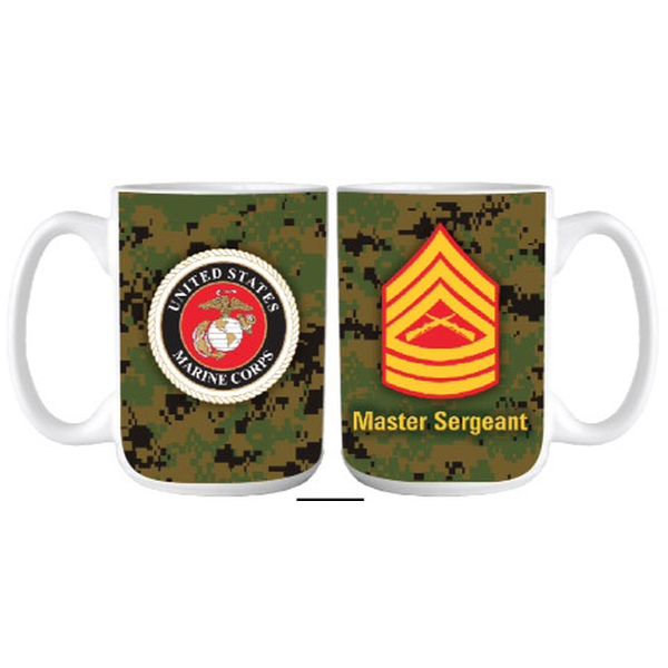 Marine Corps Emblem and E-8 First Sgt with Digital Pattern Full Color Sublimation on White 15oz. Mug