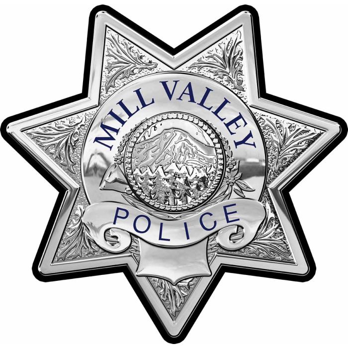 Mill Valley California, Marin (Officer) Badge All Metal Sign. Blank (No Badge Number)