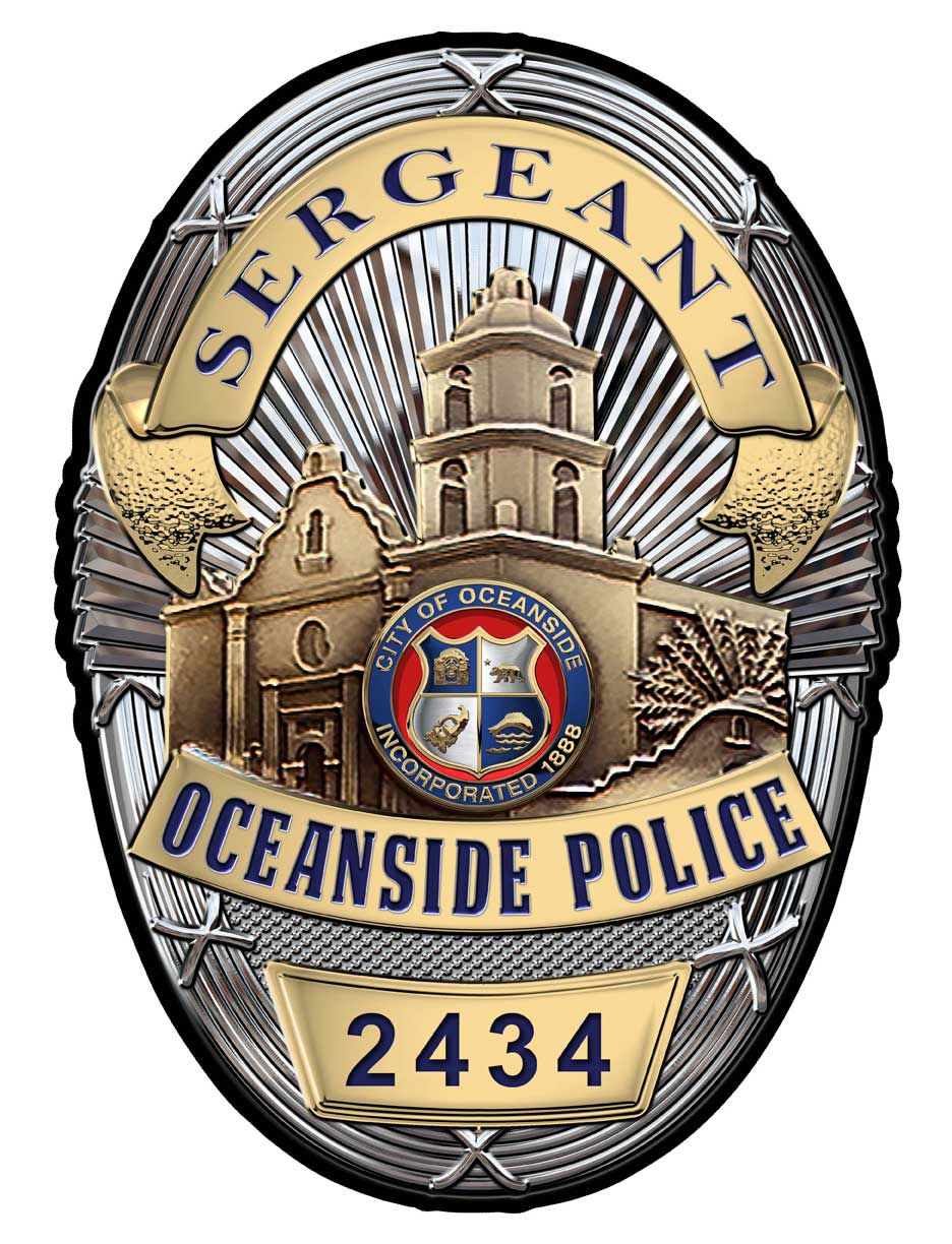 Oceanside Police (Sergeant) Department Badge all Metal Sign with your badge number. 16" x 16" This custom metal shape is hand made in the USA using heavy gauge American steel and a process known as sublimation, where the image is baked into a powder coating for a durable and long lasting finish. This custom metal shape is drilled and riveted for easy hanging. We do not stock signs as that would be too costly to store, we begin the process of making your sign or clock after your order is confirmed! Our sublimation process takes approximately 7 -30 business days to complete and shipped.
