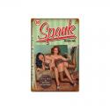 Pin Up Surfboard Redhead All Metal Sign with Shark Bite