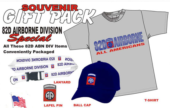 Army 82D Gift Pack Includes Grey Silk Screened Tee with Metal Look Logo Embroidered Ball Cap Lanyard and Lapel Pin