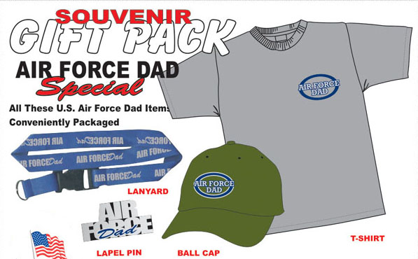 Air Force Dad Gift Pack Includes Grey Silk Screened Tee Circle Logo Embroidered Ball Cap Lanyard and Lapel Pin