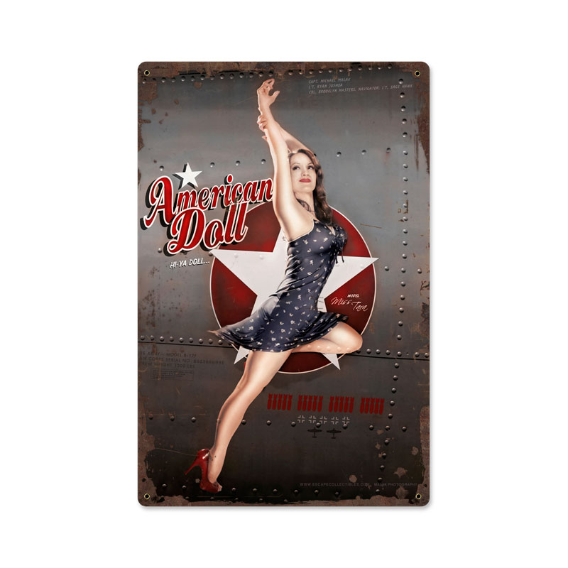 From the Wings of Angels licensed collection, this American Doll metal sign measures 12 inches by 18 inches and weighs in at 2 lb(s). We hand make all of our metal signs in the USA using heavy gauge american steel and a process known as sublimation, where the image is baked into a powder coating for a durable and long lasting finish. This metal sign is drilled and riveted for easy hanging.