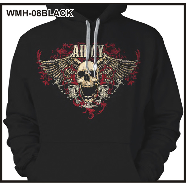 Army Skull and Wings Design Black Hoodie