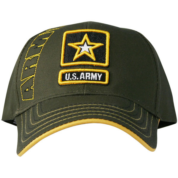 Army Star 3D Embroidery Front of Cap with ACU Fabric Trimming on Bill and Around Logo Olive Ball Cap