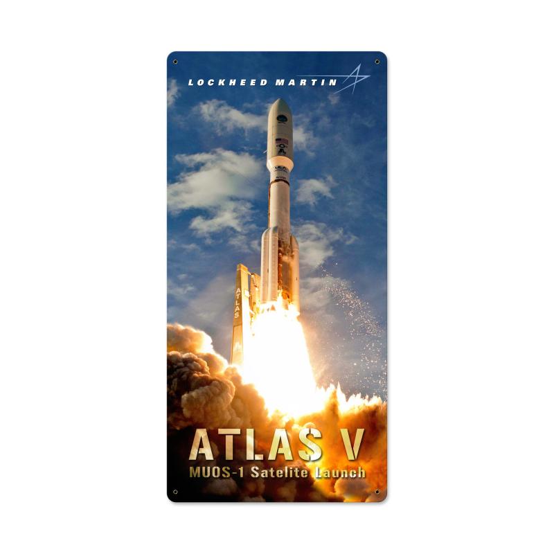 From the Lockheed Martin licensed collection, this Atlas 5 metal sign measures 12 inches by 24 inches and weighs in at 3 lb(s). We hand make all of our metal signs in the USA using heavy gauge american steel and a process known as sublimation, where the image is baked into a powder coating for a durable and long lasting finish. This metal sign is drilled and riveted for easy hanging.