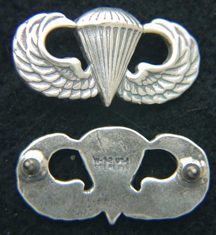 Basic Paratrooper Mess Dress Badge Sterling Oxidized