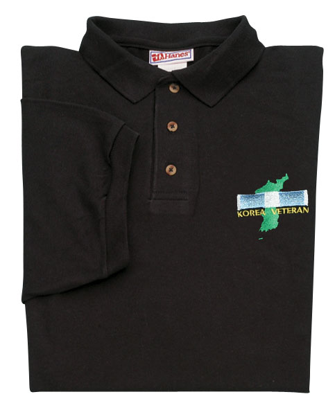 Korea Veteran Ribbon with Map Direct Embroidered Black Polo Shirt