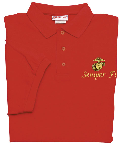 Marine Eagle Globe and Anchor with Semper Fi Direct Embroidered Red Polo Shirt