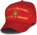 Once A Marine Always A Marine Eagle Globe and Anchor Direct Embroidered Red Ball Cap