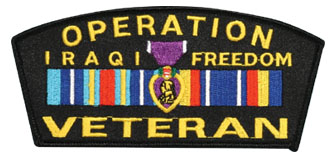 Operation Iraqi Freedom Veteran with Ribbon and Purple Heart Cap Emblem