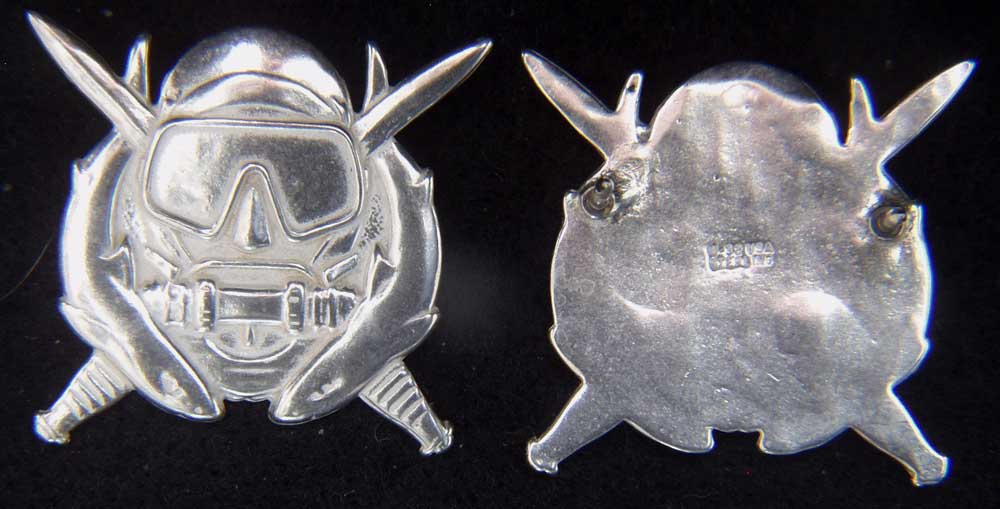 Special Operations Diver Badge Sterling Silver hallmarked W-32 USA Sterling. While the photo does not show the clutch backs they will be provided.