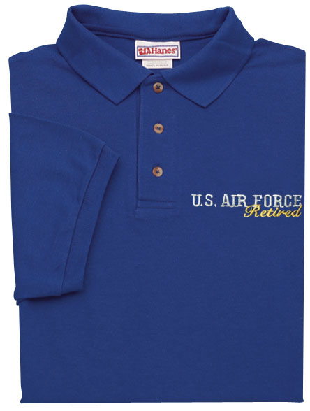 US Air Force Retired Direct Embroidered Royal Polo Shirt