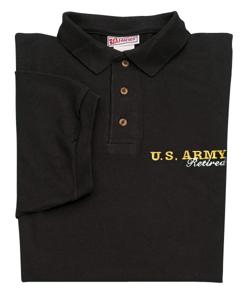 US Army Retired Direct Embroidered Black Polo Shirt