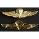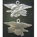 This is the US Navy Seal insignia in full size for wear on the Uniform made in sterling silver with a 24k gold plate. This is an extremely heavy insignia due to its size 2 3/4 inches wide. It is hallmarked W-32 and Sterling. For those who want to wear the best.