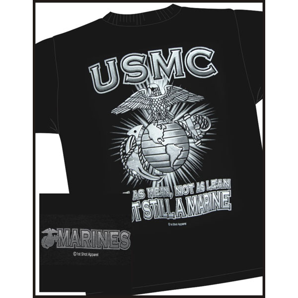 Marine Shirt USMC Not As Mean, Not As Lean Silk Screen Black Tee Shirt