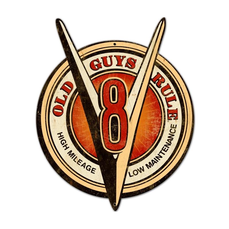 From the Old Guys Rule licensed collection, this V8 High Mileage Low Maintenance measures 18 inches by 15 inches and weighs in at 3 lb(s). We hand make all of our s in the USA using heavy gauge american steel and a process known as sublimation, where the image is baked into a powder coating for a durable and long lasting finish. This is drilled and riveted for easy hanging.