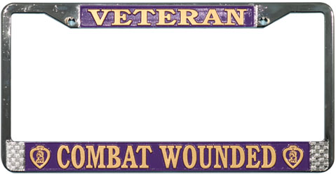 PURPLE HEART COMBAT WOUNDED VETERAN CHROME LICENSE PLATE FRAME