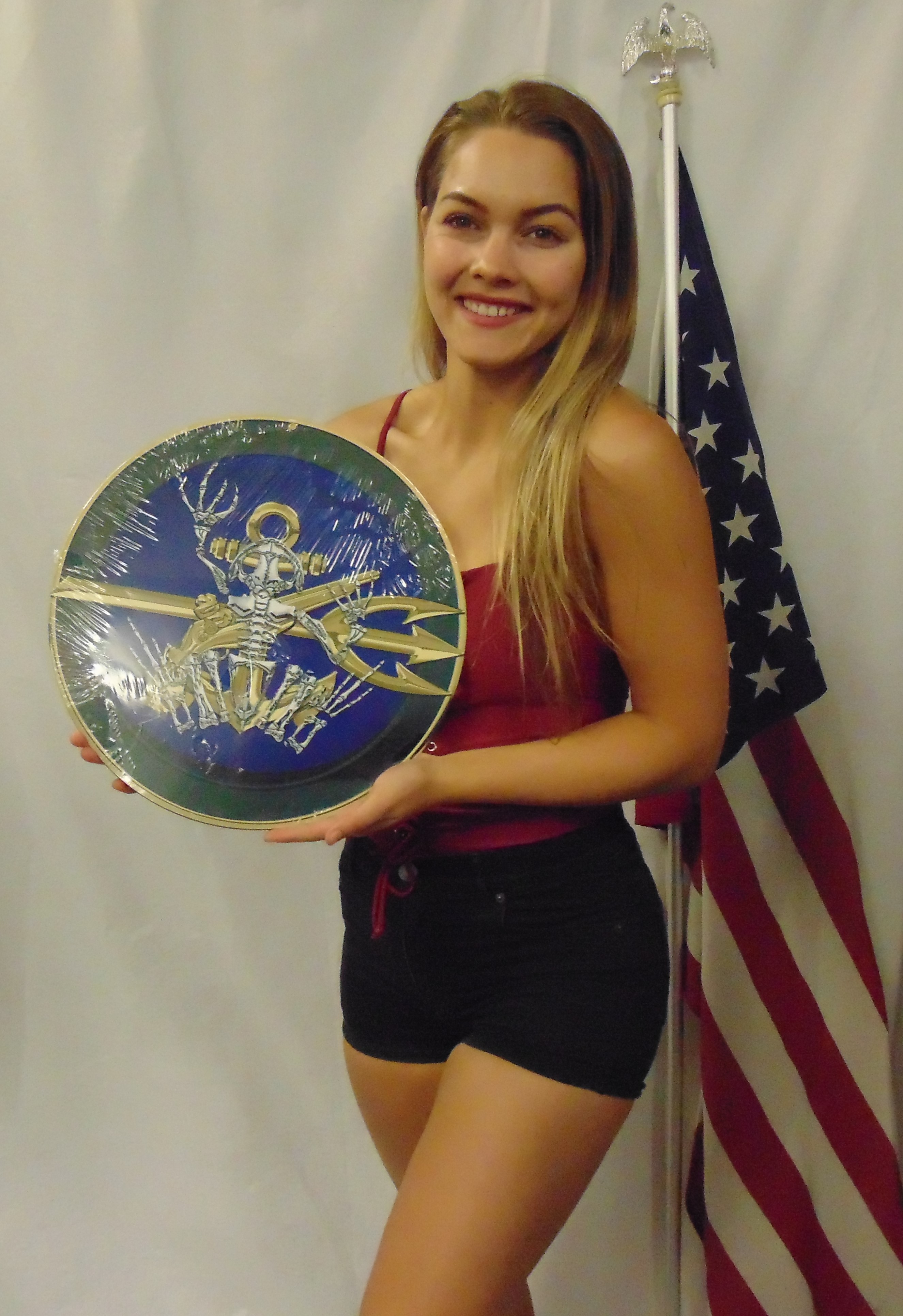 From Special Operations Group, presented by "Military Insignia 3D" collection by Serge Averbuk, this Naval Special Warfare Command (NSWC) measures 14 inches. This custom metal shape is hand made in the USA using heavy gauge American steel and a process known as sublimation, where the image is baked into a powder coating for a durable and long lasting finish. This custom metal shape is drilled and riveted for easy hanging.