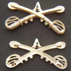 Spanish American War A Company Crossed Sabres, Museum quality reproduction in sterling with gold plate. These have sew on loops. Price is for one.