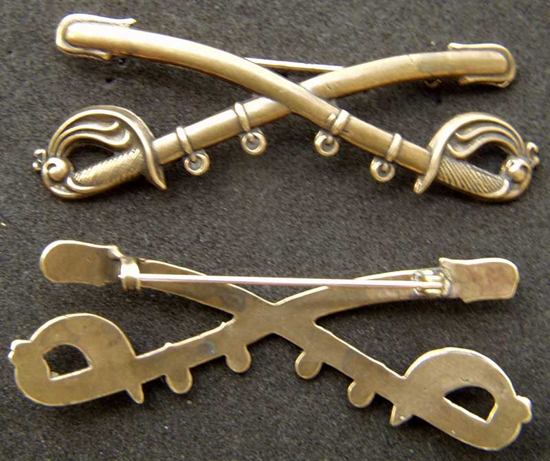 Spanish American War Crossed Sabers in Brass with a gold plate. Sold in singles.